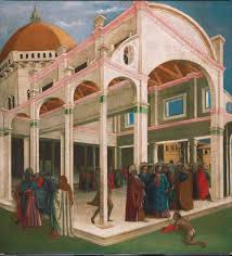 La pensée évolue aussi dans sa capacité à saisir l’espace. La peinture imite d’abord le volume de la sculpture. On voit le premier tableau qui met en œuvre la perspective mathématique. Les spécialistes trouveront sans doute cela absurde mais il m’a fait penser à Chirico. On voit ainsi que la perspective calculée pour les monuments est doublée d’une série de nuages dans le ciel au volume décroissant. Cet artifice donne un air moderne au tableau. Pour saisir l’évolution de la perspective, il faut voir les œuvres. On ne peut d’ailleurs que conseiller d’aller voir cette exposition mais surtout en faisant bien attention au fait que ce n’est pas une collection d’œuvres qui est montrée mais l’évolution des conceptions artistiques et des modes de pensées telles que l’art les met en œuvre.